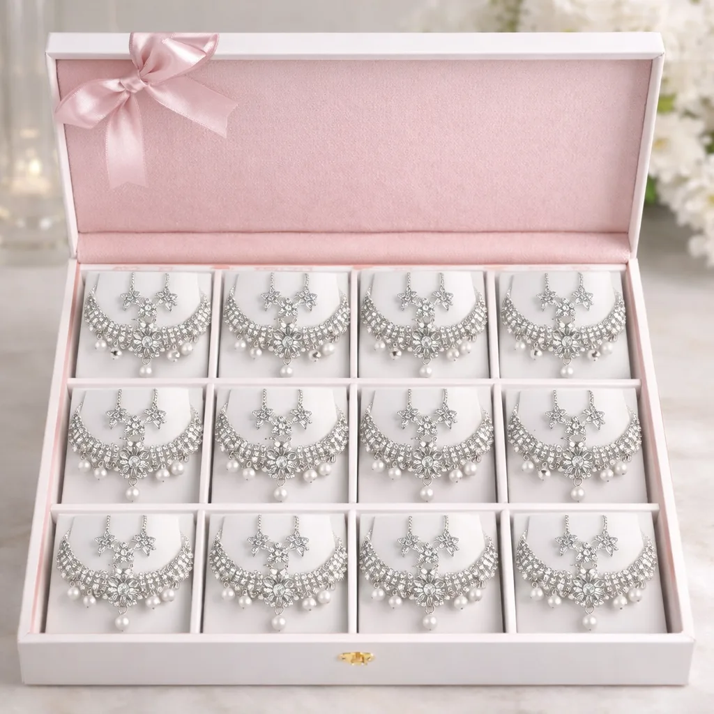 Silver Crystal Bridal Necklace Set Box – Artificial Jewellery Wholesale (12 Pcs Box)