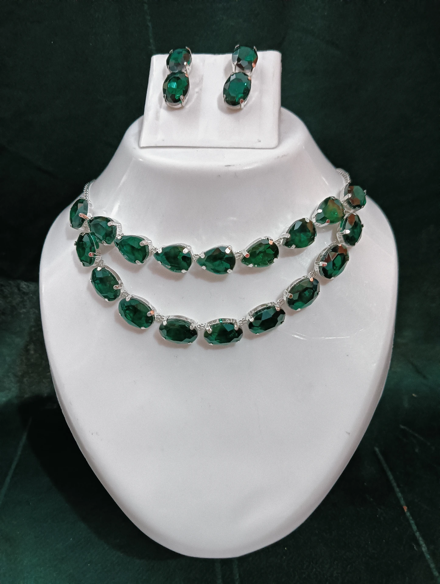 Designed with premium emerald-green crystals and silver finish, this set gives a modern and classy look perfect for any occasion 💃