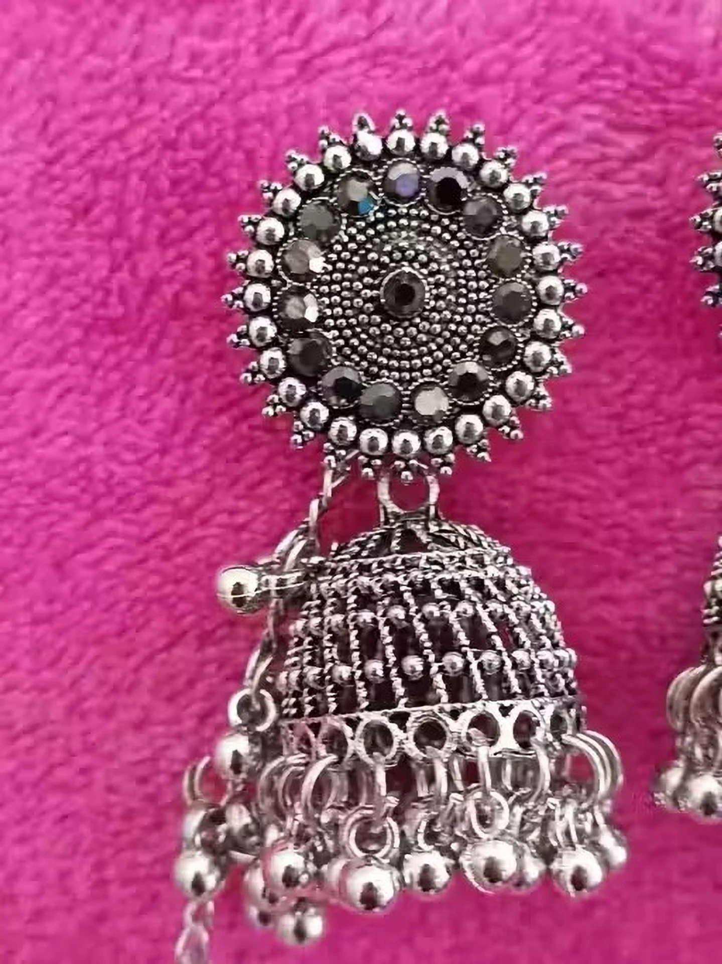 Add a bold ethnic touch with these beautiful oxidised jhumka earrings, designed with a traditional dome shape and detailed ghungroo work 😍