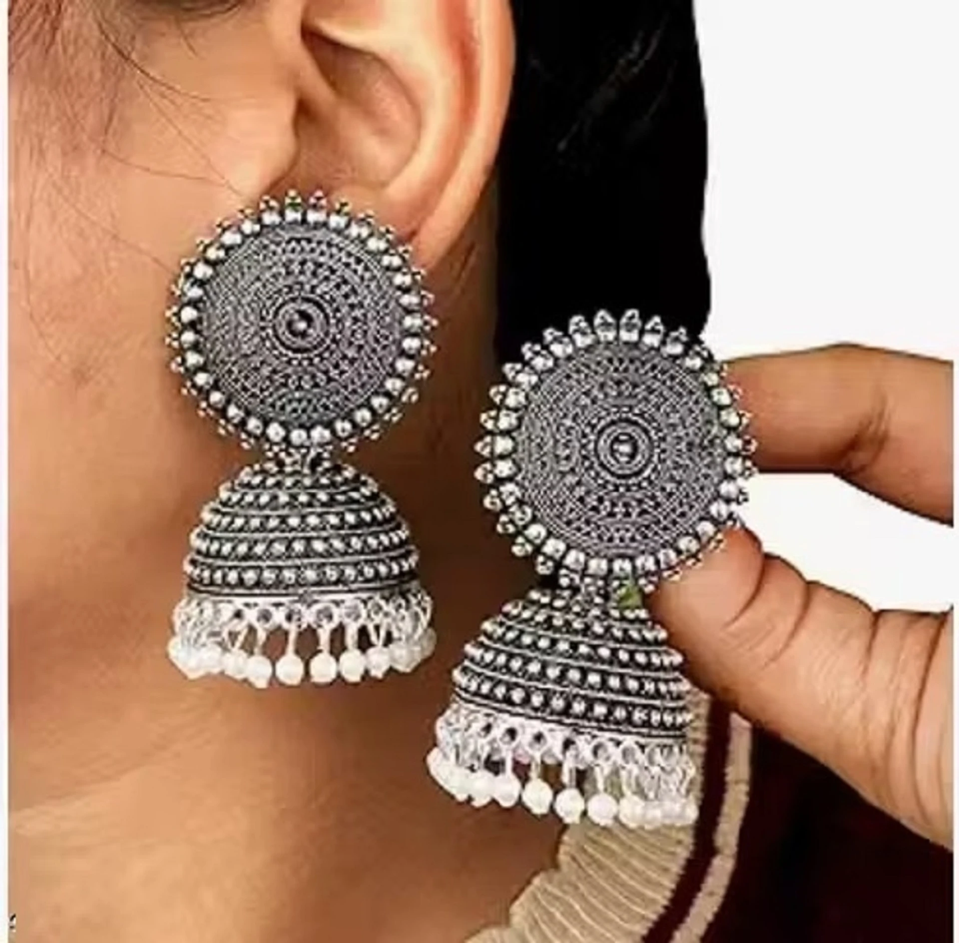 Upgrade your ethnic style with these beautiful oxidised silver jhumka earrings 😍