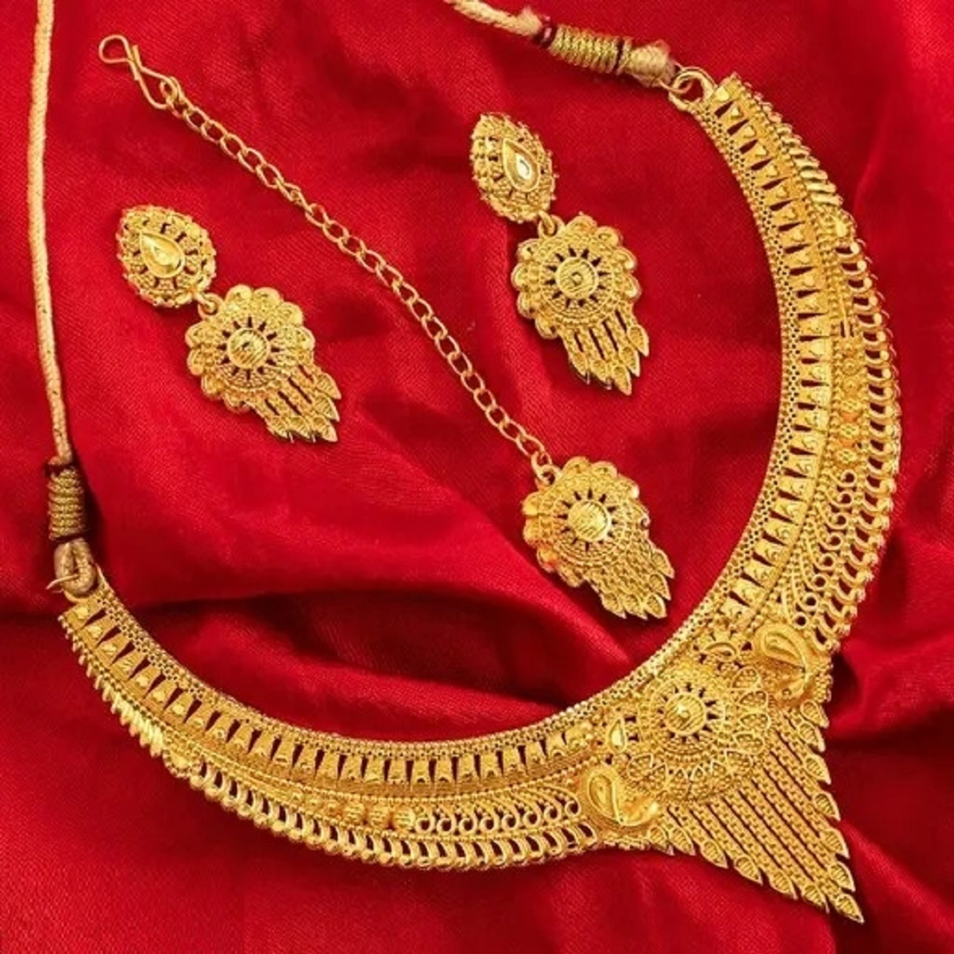 Traditional Gold Plated Choker Necklace Set with Earrings & Maang Tikka – Bridal Jewellery Wholesale